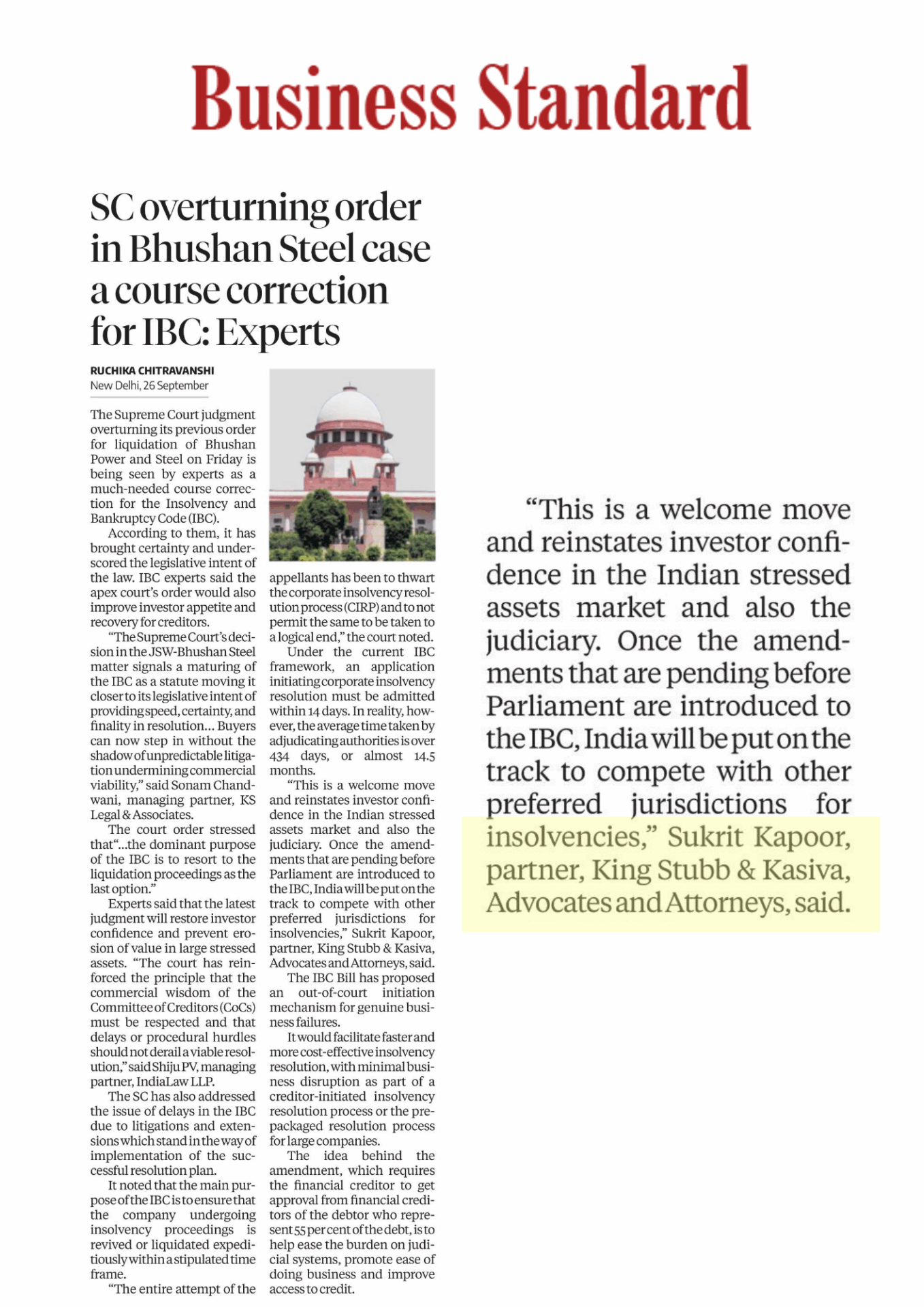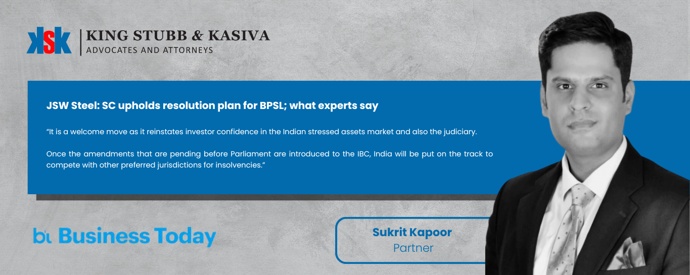 Sukrit Kapoor on Supreme Court’s Nod to JSW Steel Resolution Plan for BPSL: Boost for Investor Confidence and India’s Insolvency Regime