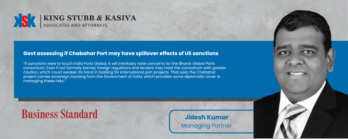 Jidesh Kumar on Chabahar Port and US Sanctions Risks in an article by Business Standard