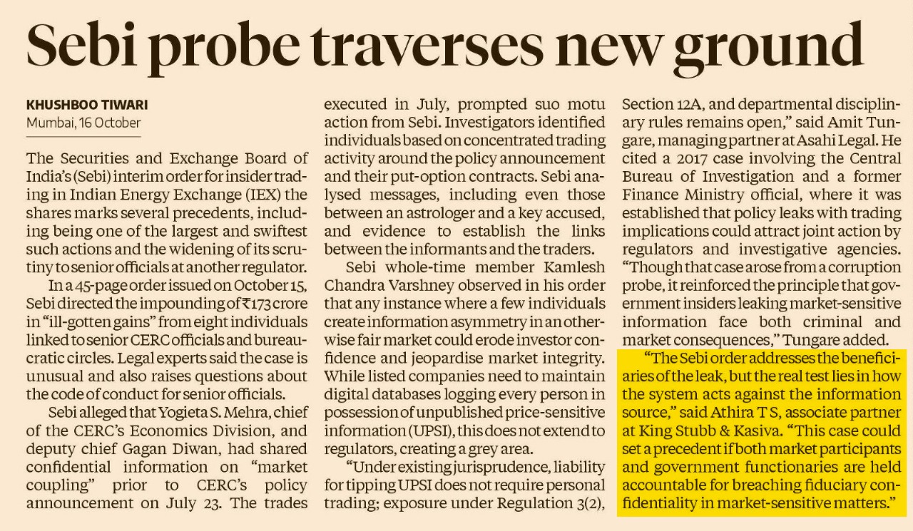 SEBI Insider Trading Case in IEX Stock Could Set New Precedent: Insights from Athira T S