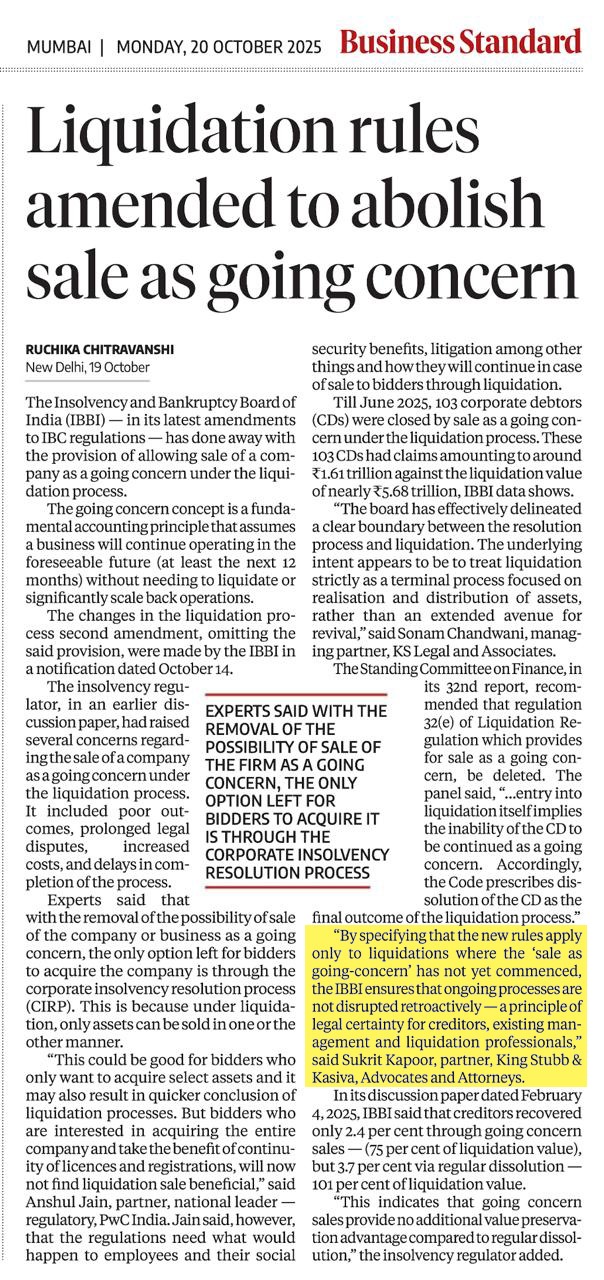 Amendment to Liquidation Regulations Streamlines Insolvency Framework: Sukrit Kapoor Comments