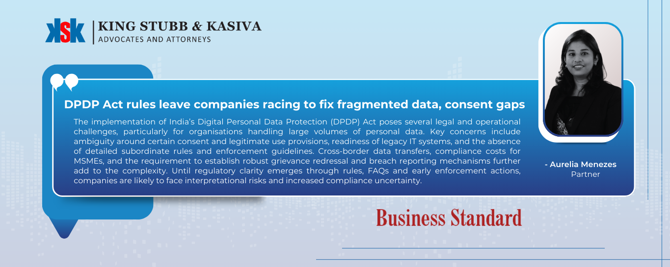 In a recent Business Standard article, Aurelia Menezes highlighted the pressing challenges businesses face in implementing India’s Digital Personal Data Protection (DPDP) Act. Aurelia stated: “The implementation of India’s Digital…