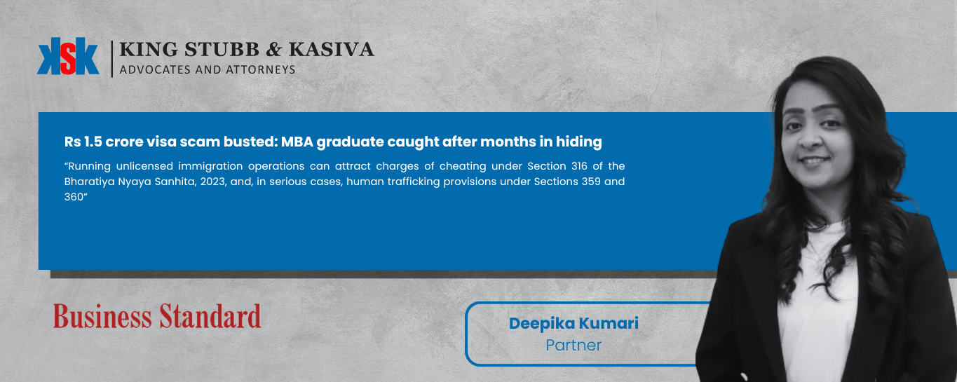 Business Standard recently featured legal expert Deepika Kumar in its coverage of the ₹1.5 crore visa scam, where an MBA graduate was arrested after months in hiding. Commenting on the…
