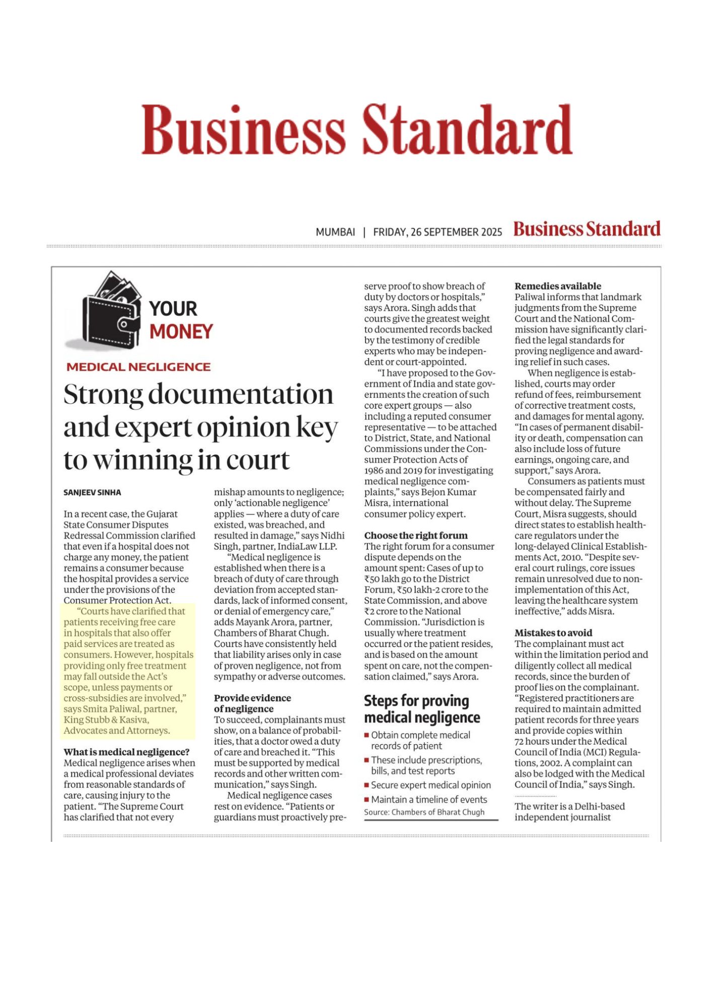 In an article published by Business Standard on the complexities of medical negligence litigation, Smita Paliwal, Partner at KSK, highlighted an important clarification made by the courts on the scope…
